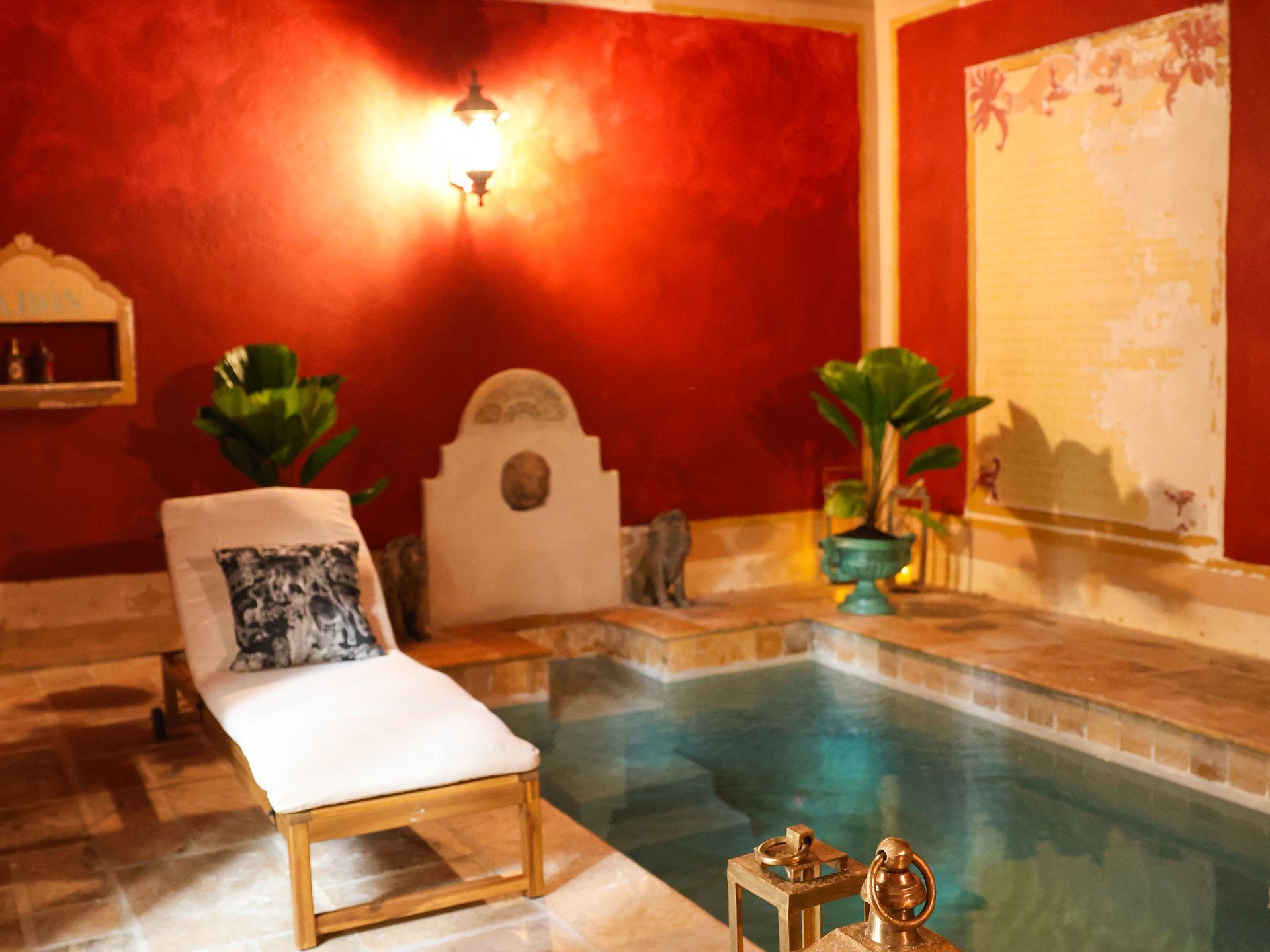 Our indoor pool is more than a place to swim—it’s a peaceful escape tucked within the heart of Casa Lucienne. Surrounded by stone lions and walls adorned with hand-painted details, this tranquil space invites you to pause, breathe, and soak in the charm of a lovingly restored colonial haven. Open daily from 8 AM to 10 PM.