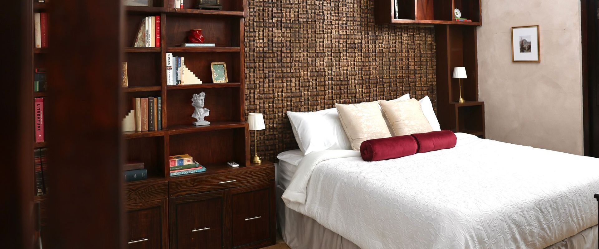 But its most poetic detail lives outdoors: a private terrace with a vintage bathtub under the open sky. She