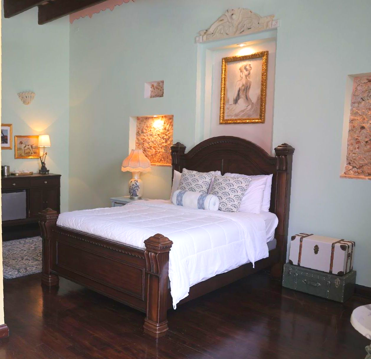 Môme Moineau — this suite is unapologetically grand. Velvet textiles, quiet mirrors, and a softness that